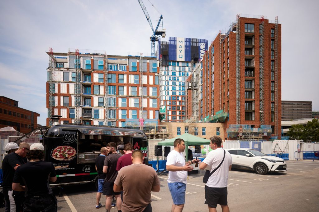 “Friday was a celebration of MAYO Civils completing the concrete frame works on the last block ahead of schedule and the façade works progressing well across all elevations, leaving us in a strong position on site. As a team, we felt it was only right to hold a topping out party to recognise the hard work that’s gone into reaching this stage. It was a great opportunity to thank everyone involved, from management to operatives, for their continued efforts and to help maintain that positive energy as we transition into the next phase of works.”